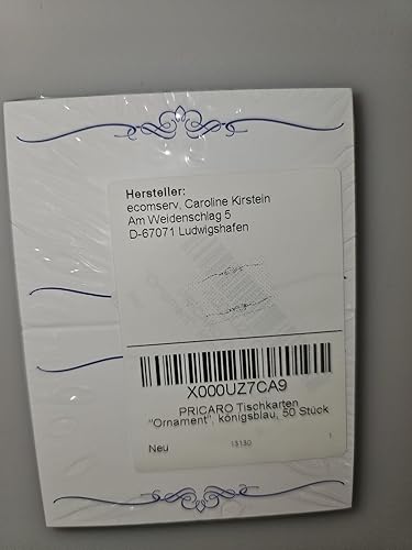 PRICARO Cartes de Place Ornement, Bleu Royal, 50 pièces