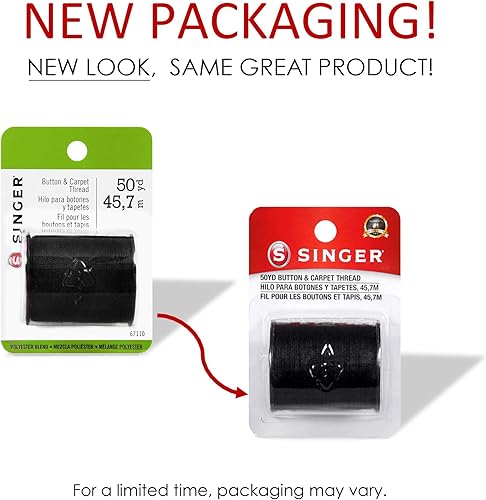 Singer 67110 Fil à Coudre pour Boutons et Tapis, 45,7 m, Noir, 9,7 x 3,8 x 6,3 cm