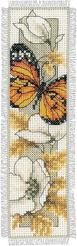 Vervaco De Point De Croix Compté Marque-Page DIY PAPILLONS ET FLEURS IV Kit Complet Loisir Créatif Adulte Cadeau De Lecture Broderie Débutant ca. 6 x 20 cm Cross Stitch
