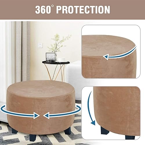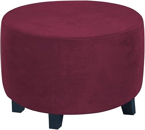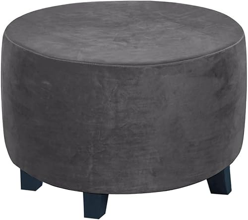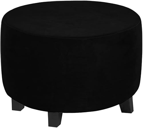 XGANGM Velours Housse de Pouf Ronde Extensible Housse Ottomane Cover Diamètre Supérieur 45/50/60/90cm Housse de Protection pour Repose Pieds Housse Tabouret Rangement,Navy Blue,1small