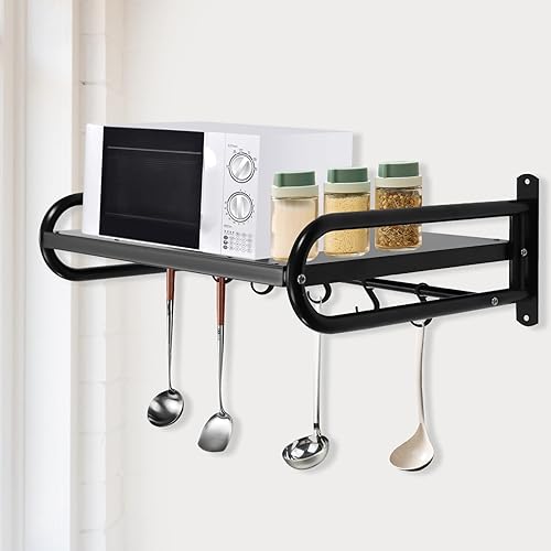 Chensyo Support pour Four à Micro-Ondes avec 6 Crochets EtagèRe Murale Capacité De Charge Maximale 30 pour Tous Types D'Objets Adapté à La Cuisine Salle De Bains (Noir)