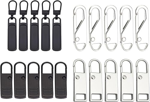 20 Pièces Tirettes de Réparation Fermeture Eclair,Détachable Zipper Fixateur Tête,Métal Zipper Pull,Tirette Fermeture Eclair Remplacement,pour zip valise bottes veste sac à dos