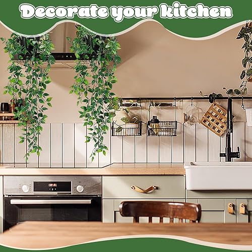 DECARETA 2 PCS Plante Artificielle Tombante en Pot Faux Plante Suspendue Plante Artificielle Tombante Murale Plante Decorative Interieur Plante Plante Decorative Interieur Pot pour Cuisine Salon