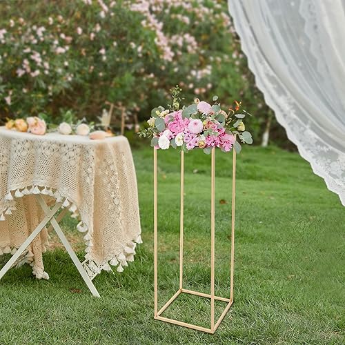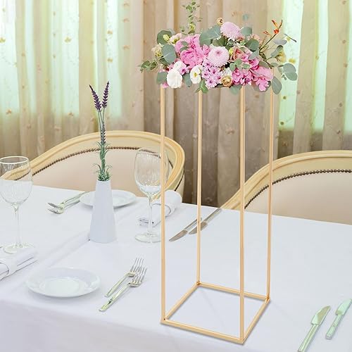 Support de fleurs de mariage en métal doré avec 2 couches de plaque acrylique - Design stable - Hauteur : 80 cm - Capacité de charge : 5 kg - Pour mariages/fêtes