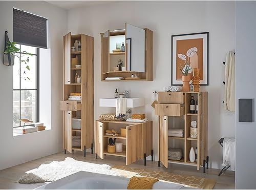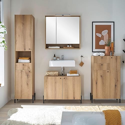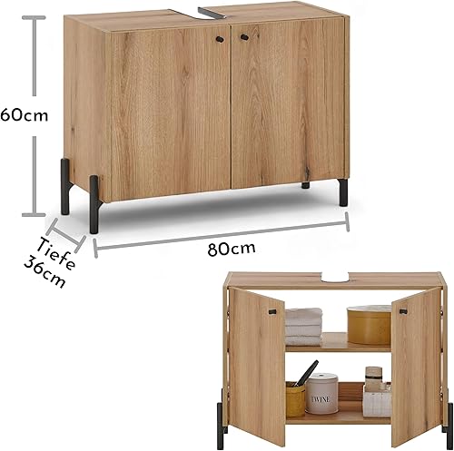 Stella Trading Oakland Meuble de Salle de Bain, sous Vasque, Aspect chêne Evoke Coast, certifié FSC, avec Beaucoup d'espace de Rangement, 80 x 60 x 36 cm (l x H x P)