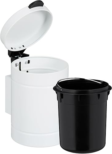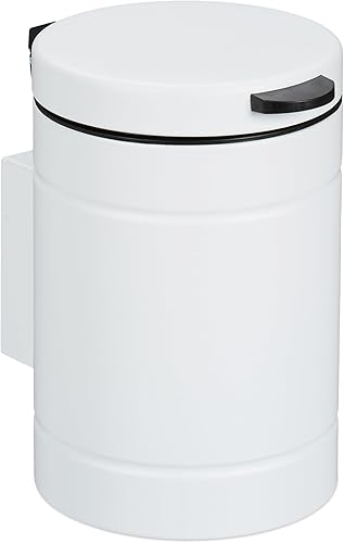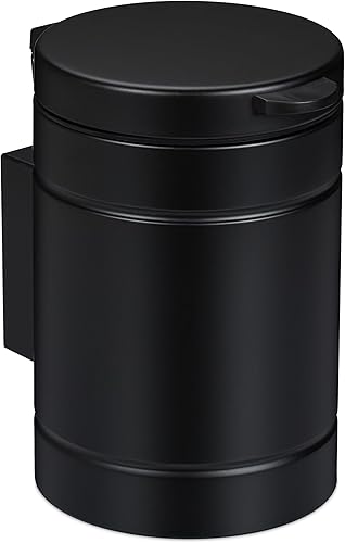 Relaxdays Poubelle de Salle de Bain, 3 L, Montage Mural, mécanisme de Fermeture, Seau intérieur, métal, Noire
