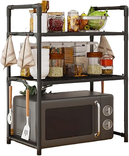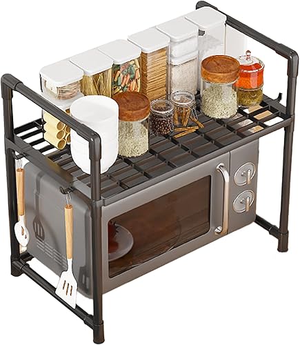 Étagère pour Micro-Ondes - Porte-Four à Micro-Ondes avec Crochets - Support Double Étage Élargi pour Machine À Pain - Rangement Table Salle De Bain Extérieur Placard