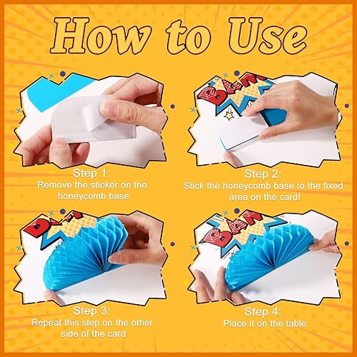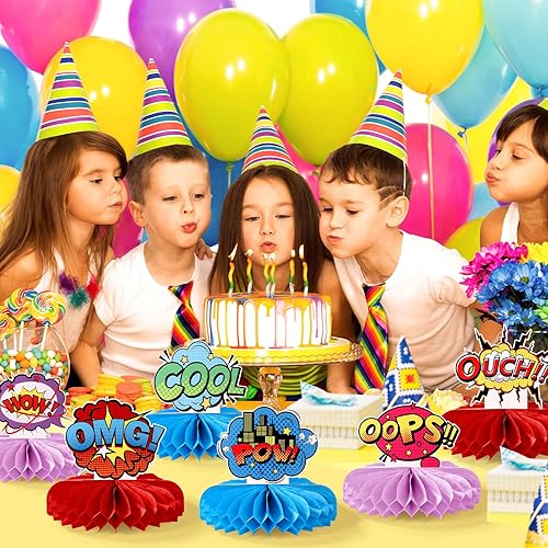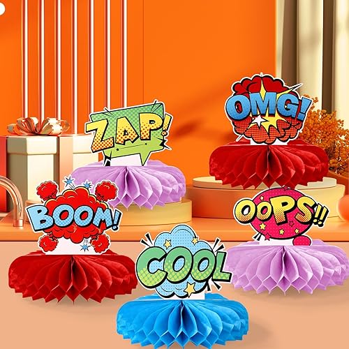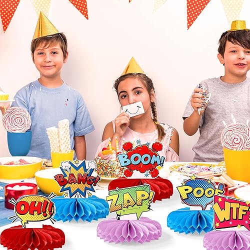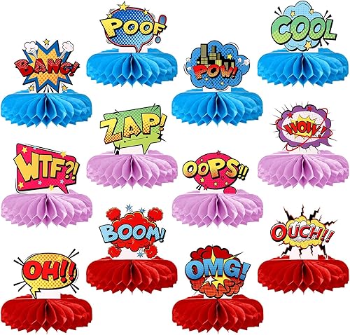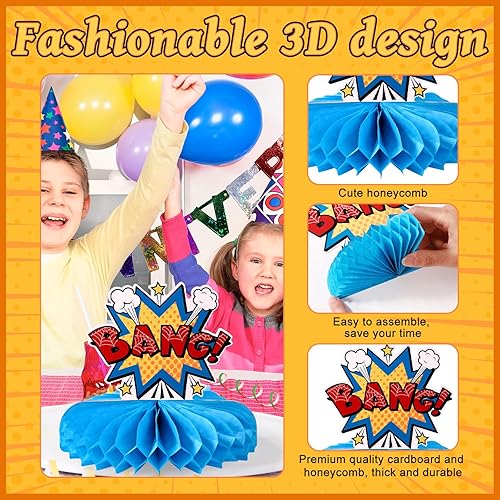 12pcs Centres Table Hero en Nid Abeille, Divers Modèles Panneaux Action Hero Décorations Anniversaire Dessus pour Photo Fête