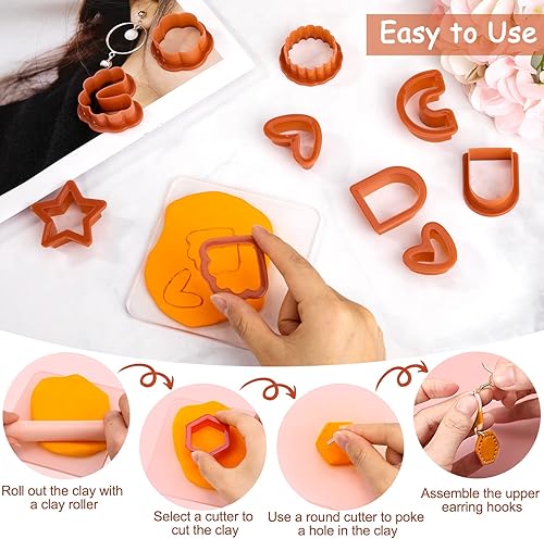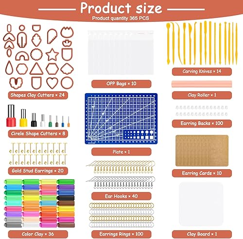 Jeesblsy Emporte-pièces en Argile Polymère pour Boucles D'oreille, 36 Couleurs Pâte Polymère avec avec Outils Accessoires, Moules Ronds en Forme de Cercle pour Fabrication de Bijoux (365pcs)