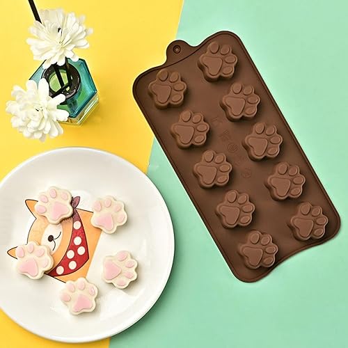 Moule en silicone en forme de patte de chat – Moules en silicone pour friandises pour chien | Plateau à 10 cavités pour chocolat, bonbons, gelée, glaçons, savon, bougie | moule de cuisson pour