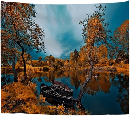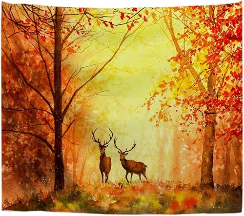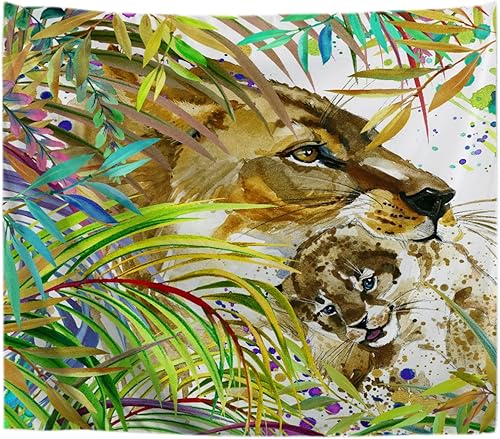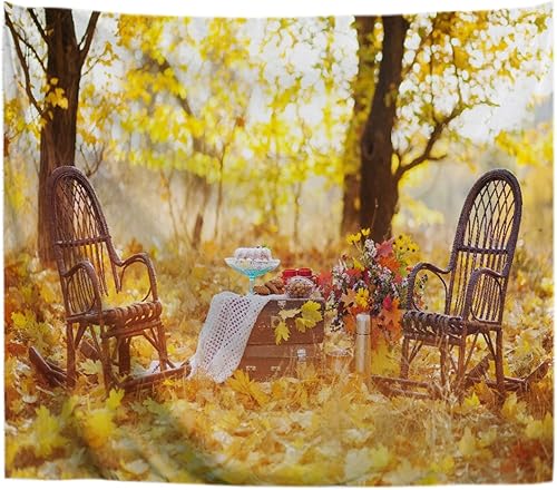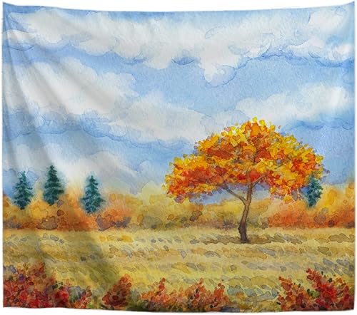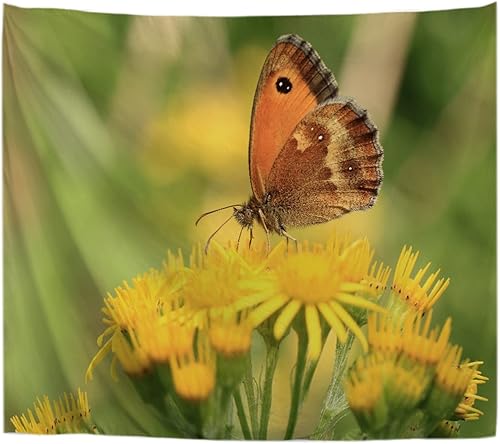 A.Monamour Tapisserie Murale Papillon Sur Fleurs Jaunes Tissu Toile Tenture Murale Décoration Murale pour Salon Chambre Dortoir 153x203cm