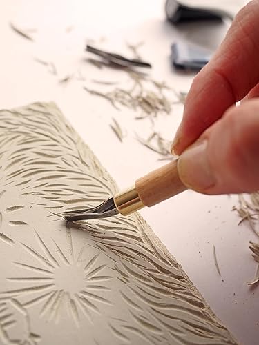 Brause 892B - Un coffret d'initiation à la linogravure comprenant un manche en bois, 5 gouges, un tube de peinture, une palette, une plaque de linoléum A6, un extracteur de gouge et un rouleau