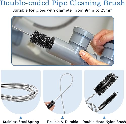 KILDOWS 3 Pièces Deboucheur Canalisation, 200cm Brosse Nettoyage Deboucheur Canalisation Brosse de Furet Deboucheur Evier Réutilisable Outil de Débouchage D'évier pour Cuisine Salles de Bain Baignoire