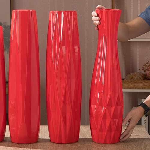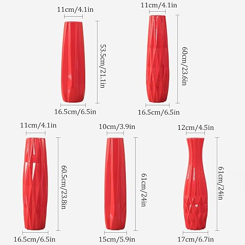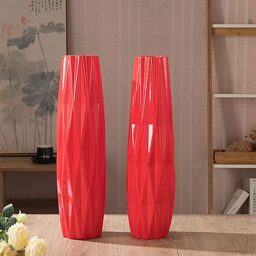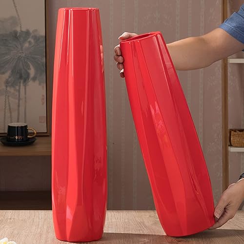 Vase à Fleurs en céramique Rouge, Grand Vase de Sol, pour Vase de décoration intérieure Moderne et Rustique, pour Les Amis et la Famille, Noël, Mariage (Color : Red, S : 16.5x53.5cm)