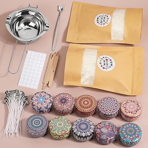 Kit de Fabrication de Bougies en Cire de Soja 900g – Set Complet DIY pour Débutants (Cire Naturelle, Mèches, Parfums, Pots, Fonte) – Cadeau Créatif pour Bougies Parfumées Maison