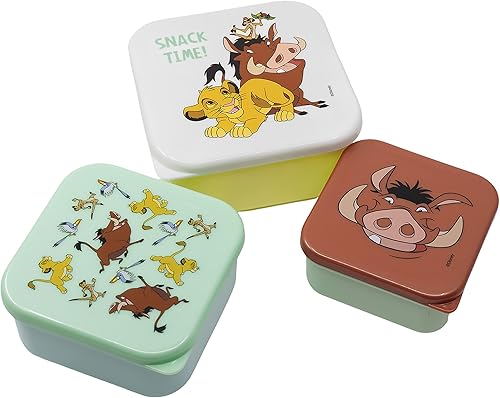 Elbenwald Set de Lunch Box Le Roi Lion - 3 Pièces avec Divers Motifs - Vert, Jaune, Blanc, Marron