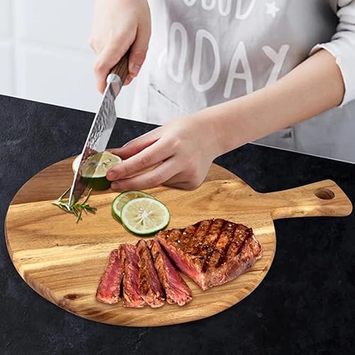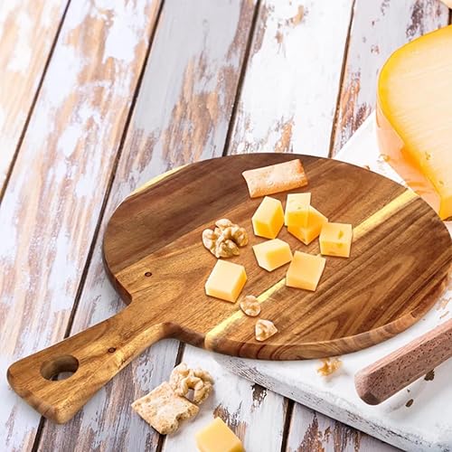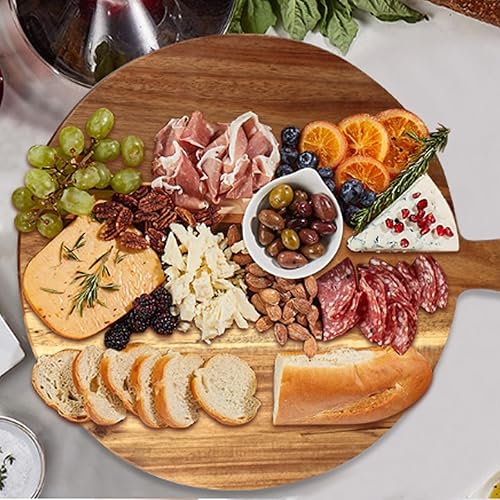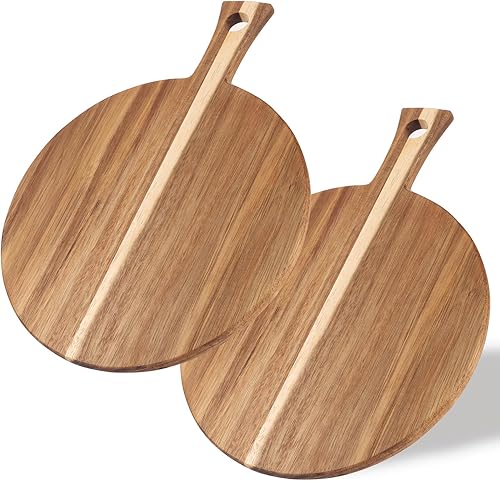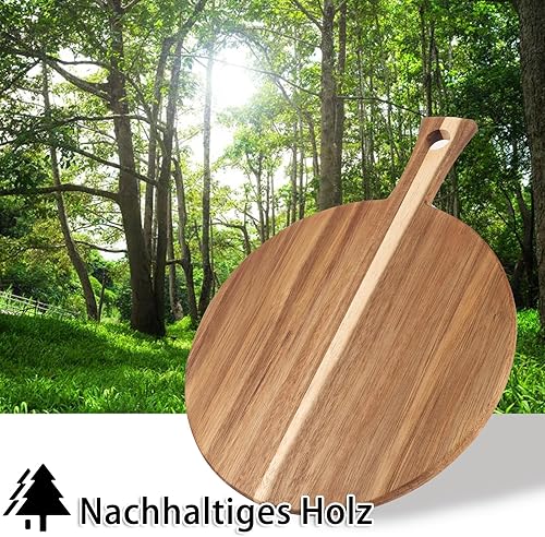 LDXDRU Lot de 2 planches à pizza rondes en bois de 40 cm - Grande planche à pizza avec poignée - Pour pizza, foccacia ou pain