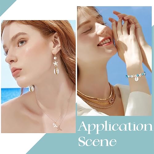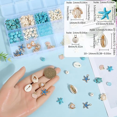SUNNYCLUE 1 boîte de 224 pièces de Perles D'Été Perles de Tortue de Mer Perles D'Étoile de Mer Breloques en Coquillage Cauri Perles Turquoise Porte Bonheur Perles Sur le Thème de L'Océan Hawaïen Perle