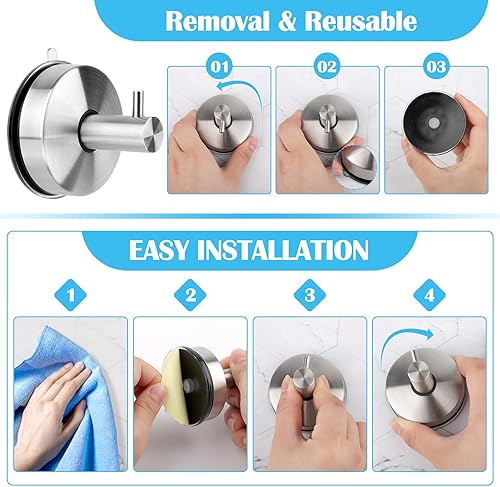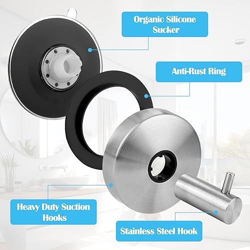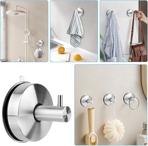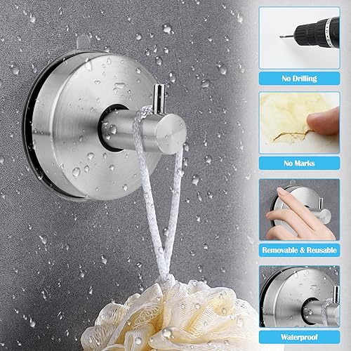 1PCS Crochet Ventouse Salle de Bain, Crochet Porte Serviette à Ventouse, Crochets à Ventouse pour Salle de Bain, Crochets Ventouse 304 Acier Inoxydable Extra Fort pour Cuisine et Salle de Bain, Douche