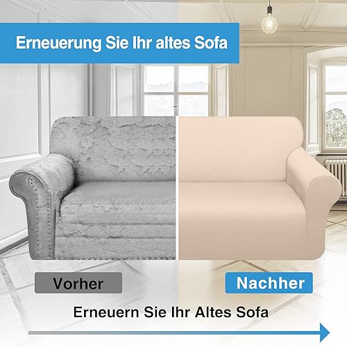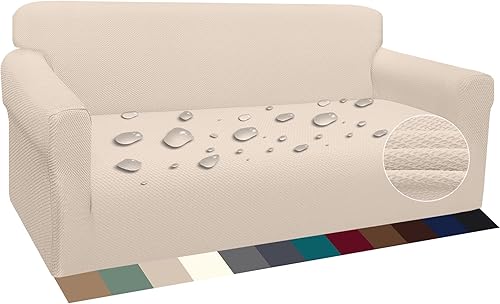 Earnmore Housse de canapé imperméable 3 Places - Stretch épais - pour Chiens et Chats - Protection de Meubles antidérapante avec Barres en Mousse - pour Le Salon - 3 Places, Beige