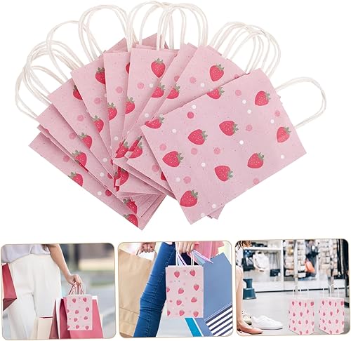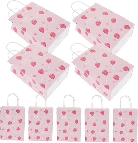 TOPPERFUN 1 Jeu Fraise Sacs De Fête D'anniversaire Sacs De Friandises Aux Fraises Sacs Avec Poignées Sacs De Bonbons Pour La Fête D'anniversaire Papier Kraft 16 Pièces