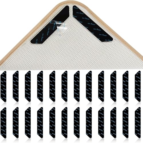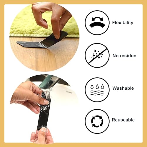 WEHOOM 24 Pièces de Bandes Antidérapantes pour Tapis, Rubans Adhésifs Antidérapants Réutilisables Lavables, Compatibles avec la Majorité des Types de Sols Lisses-25mm x 130mm