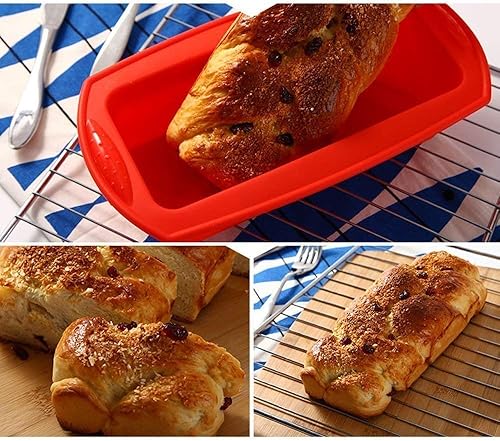 Moules à pain Moules en silicone Fondants à pain Plateau antiadhésif pour gâteaux Rectangle à gâteaux Ensemble de batterie de cuisine Moules à pâtisserie Boîtes 25x12x7.5cm (Couleur aléatoire)