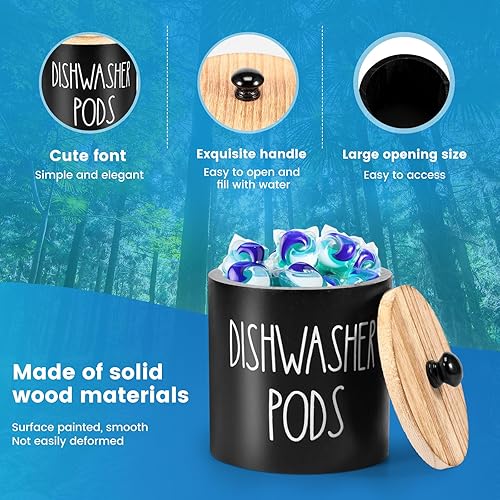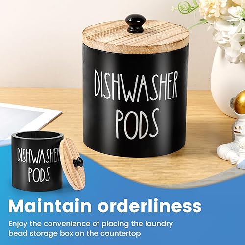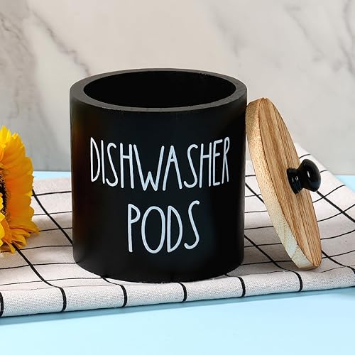 Support pour capsules de lave-vaisselle avec couvercle élégant - Récipient de tablette - Large ouverture pour le rangement de vaisselle - Forme ronde - Boîte à dishmasher - Organiseur pour cuisine à