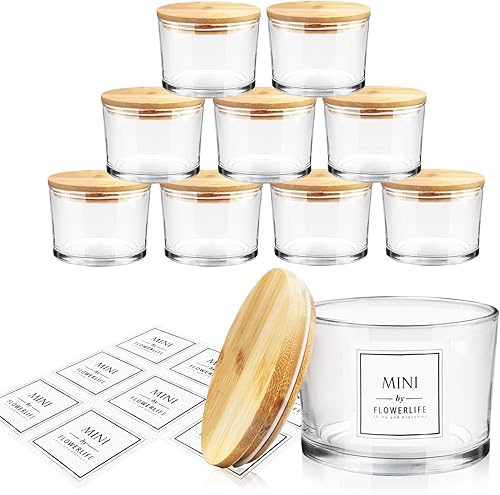 Lot de 9 bocaux à bougies vides en verre transparent de 473,6 g avec couvercles en bois, boîtes à bougies à large ouverture avec étiquettes d'avertissement adhésives pour la fabrication de bougies