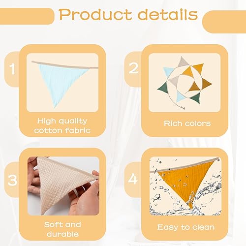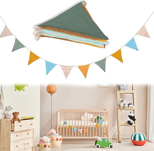 YIZWINS Guirlande Fanions Tissus, 2.6M Guirlande Chambre Enfant Fanion, Bannière Vintage Triangle Bannière Décoration,Décoration de Chambre pour Décoration Chambre Enfant Chambre bébé à Suspendre