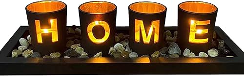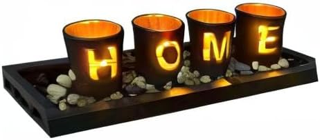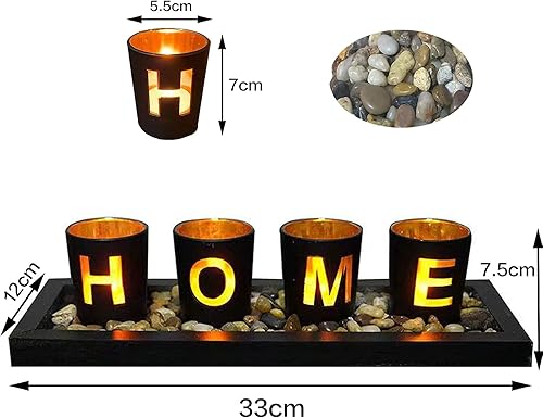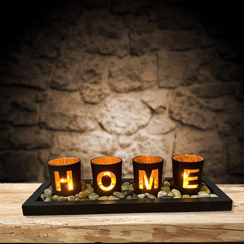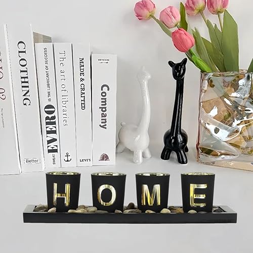 Photophore Home - En porcelaine - Noir de l'extérieur et doré à l'intérieur - Avec plateau en bois - Effets de lumière dorés - La meilleure décoration pour table à manger de maison de campagne