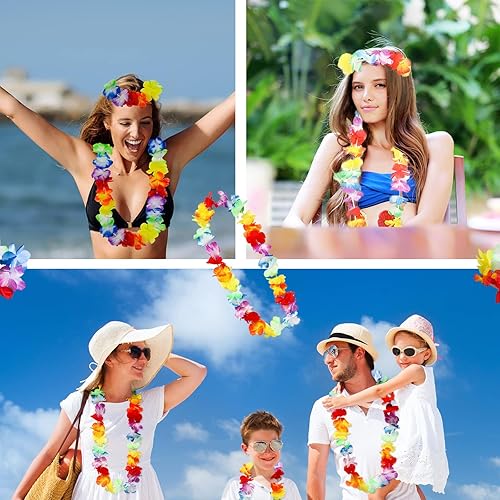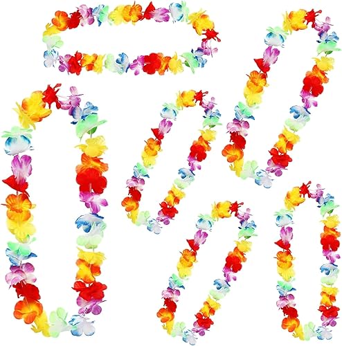 6 Pièces Collier Hawaien Fleurs,Collier Fleurs Hawaien,Collier De Fleurs Hawaienne,Multicolore Tropical Décoration Plage Pour Accessoire De Fête Tropical Plage Enfants Adultes,Danse Hula,Soirée d’Été