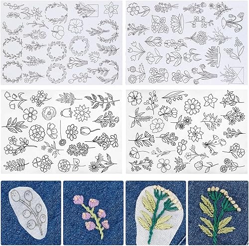 mumisuto 100 Modèles de Broderie Sur Non-tissé Soluble Dans L'eau, Auto-Adhésif, Soluble Dans L'eau Broderie Main, Lavable Autocollants de Broderie pour Adultes Débutants