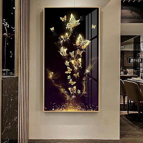 Papillon doré noir abstrait mur Art toile peinture affiche mur photo pour salon chambre décor œuvre 35x70cm (14x28in) sans cadre