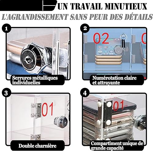 FJZFU Cell Phone Storage, Transparent Locker Box for Mobile Phone, Transparent Locker Box for Mobile Phone with LockPour Les salles de Classe, Les Bureaux