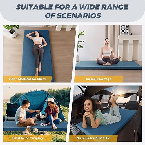 MAXYOYO Matelas futon portable, matelas de camping pliable en tissu hypoallergénique et mousse épaisse avec poignée et fermeture éclair