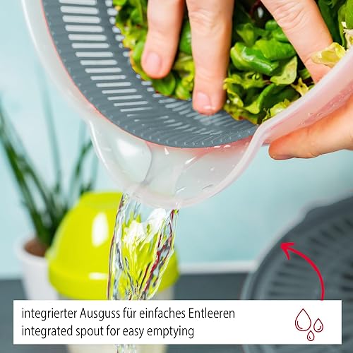 Westmark 'Fortuna' essoreuse à salade (5 l) et 'Mixery' shaker (0,5 l) - Essoreuse à salade avec bec verseur, mécanisme facile à utiliser - Shaker avec échelle de mesure et disque de mixage - Bleu