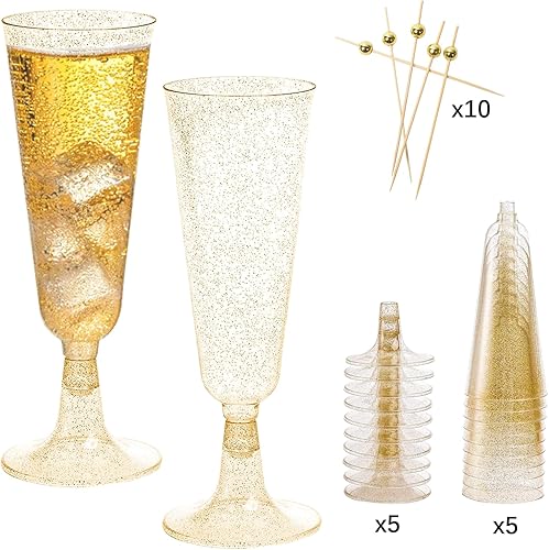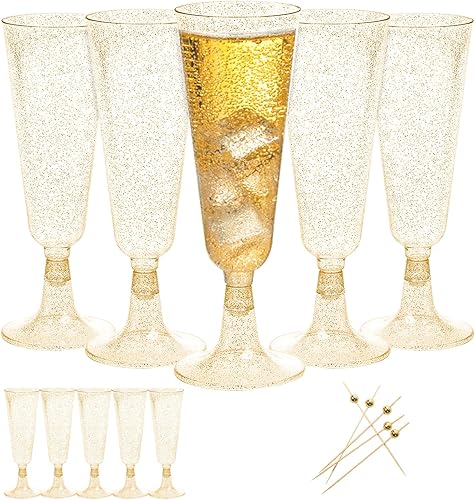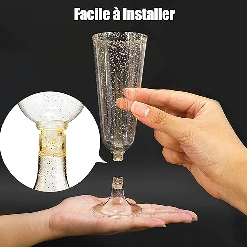 Dhnvcud 75 Pièces Flûtes à Champagne en Plastique, 135 ml Coupe de Champagne Plastique pour Fêtes, Mariages, Anniversaires - Solide & Réutilisable