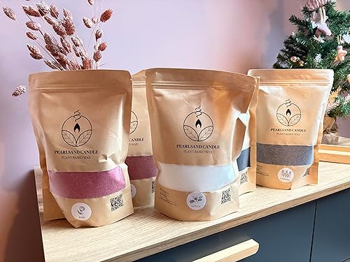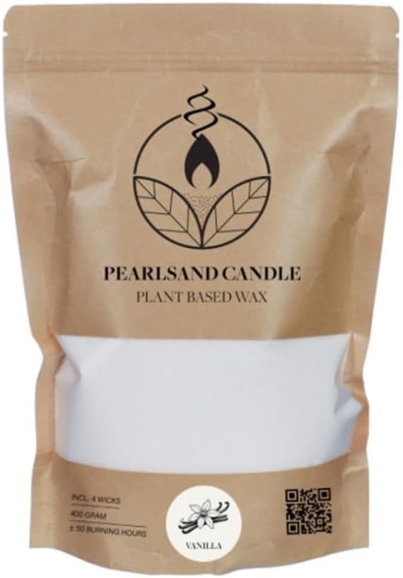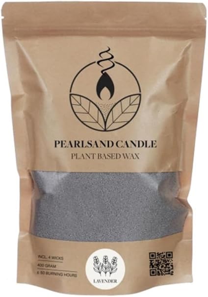 Cire parfumée nacrée, Sable pour bougie avec mèches, granulés de cire, kit de fabrication de bougies, 400 g de perles de cire + 4 mèches en coton (parfum lavande)