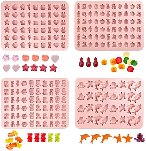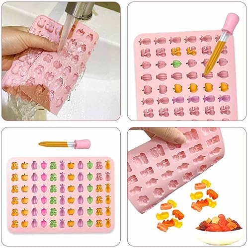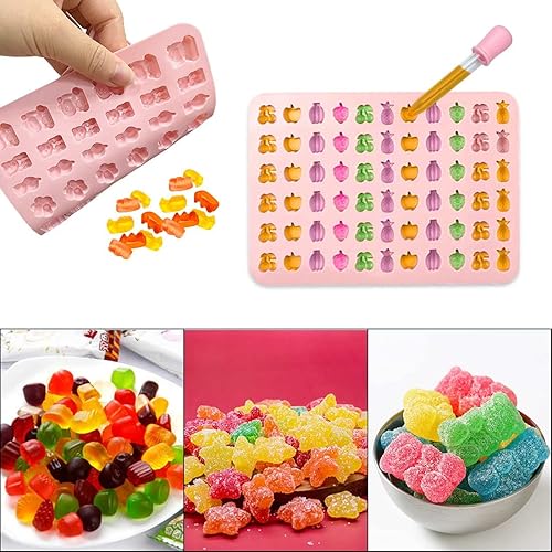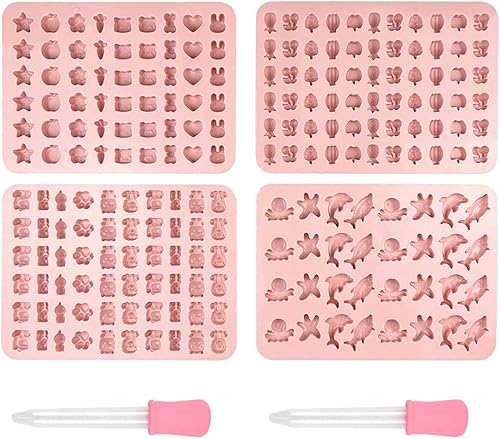 Moule Bonbon, Moules à Bonbons En Silicone, 4 Pièces Moules en Gelée à Base de Gomme avec 2 Compte-gouttes pour Biscuit, Chocolat, Savon,Bonbon, Muffins, Bougies,Mousses