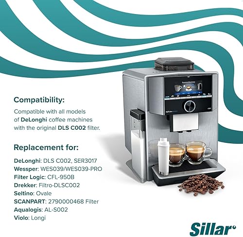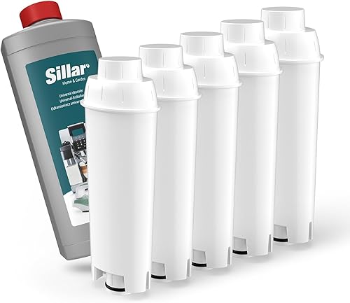 Sillar Lot de 5x Filtres à Eau pour Machines à Café Delonghi DLSC002, SER3017 & 5513292811 - Compatible avec Machines à Café ECAM, ESAM, ETAM + Détartrant pour détartrer 1L