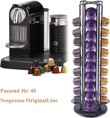 MaxMiuly Porte-Capsules de Café Compatible avec Nespresso Original,Supports pour Capsules de Café, Distributeur de Capsules Café Rotatif pour 40 Capsules,Noir