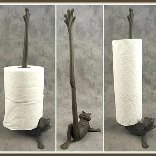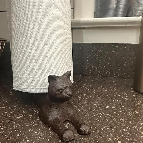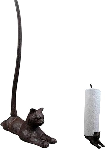 Porte-serviettes en papier chat au repos, 30,5 cm, adorable et amusant, peint à la main, en métal brun vieilli, motif chat, grenouille, chien, décoratif, porte-papier toilette sur pied, accessoire de