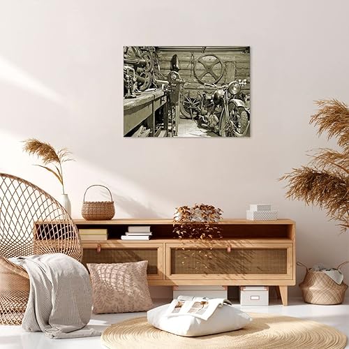Moderne Impression sur Toile 100x70cm Image Tableau Decoration Murale atelier moteur Grand Tableaux Decoratifs Muraux Chambre Cuisine Horizontal Deco Cadre Décoration Salon Art Wall AA100x70-3519