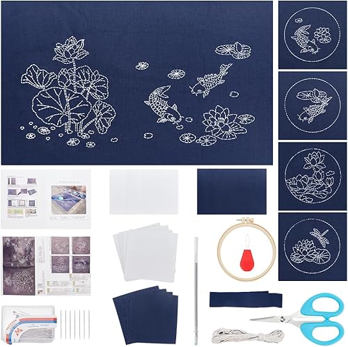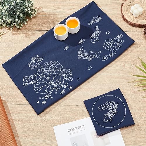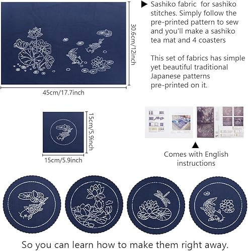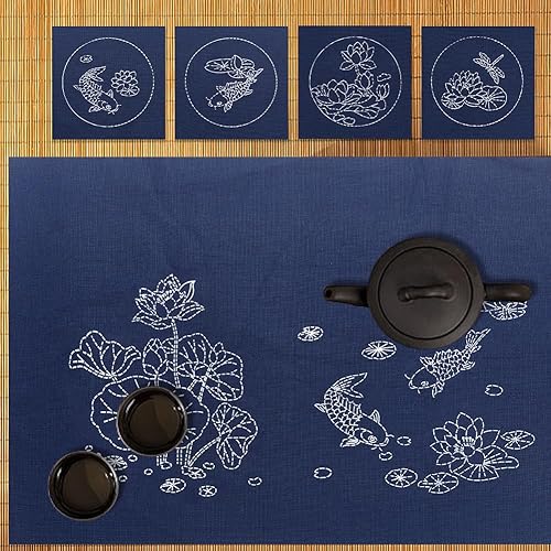 FREEBLOSS 5set Sous-verres Sashiko Sashiko Kit Set Sous-verres et Tapis de thé Sashiko Sashiko Coaster Kit Kit Sous-verre Sashiko avec Gabarit Sous-verre Sashiko pour Débutant Broderie Couture Kit