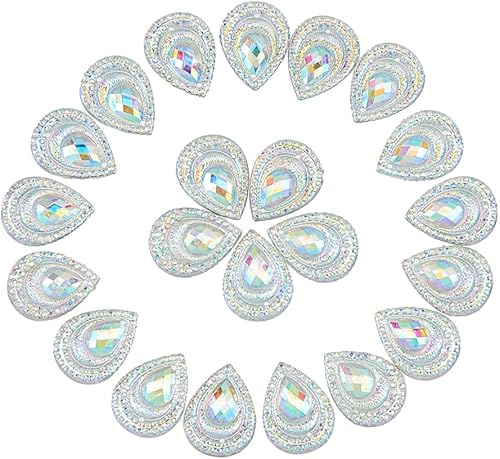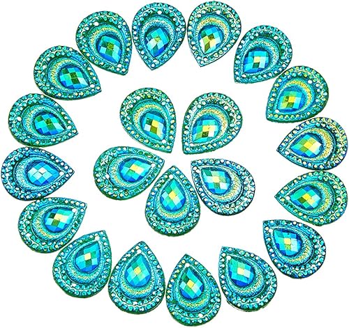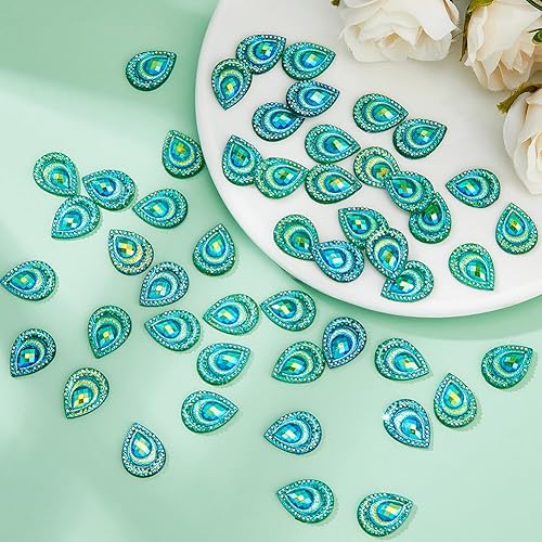 SUPERFINDINGS 100Pcs Pierre précieuse en Forme de Paon Vert 17.5x13mm Queue de Paon Cabochon en résine à Fond Plat Oeil de Paon en Goutte d'eau pour Bijoux et la décoration de Robes de Mariage