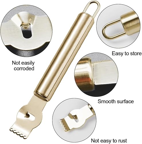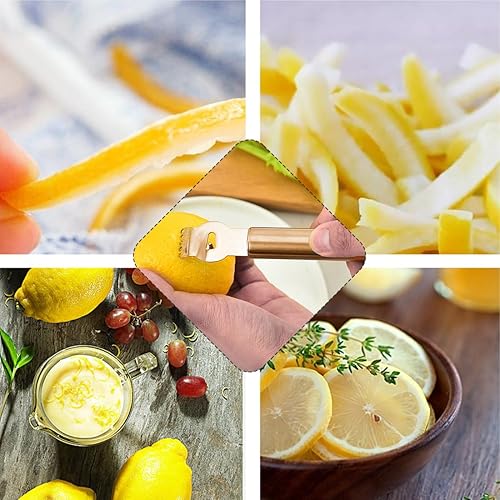 YUUSIKCO Éplucheur de Zeste de Citron - 6.5 inch Zesteur de Citron Professionnel avec Couteau Canelle Tranche de Citron en Acier Inoxydable pour Cocktail, Citron, Ustensile de Cuisine(Or)