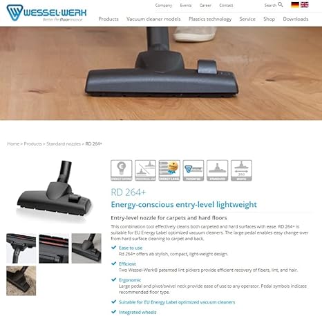 Wessel Werk – Brosse aspirateur Embout aspirateur Universel 35/32 mm Silencieux et écoénergétique pour sols durs Tapis et moquettes Compatible Rowenta Miele Bosch Eureka Kärcher