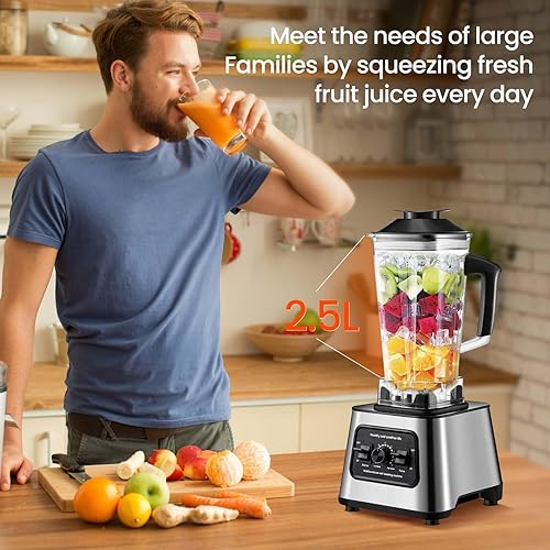 Mixeur Blender 6000W, Blender Professionnel, 2.5L Mixeur Blender Multifonctionnel, 4 Lames en Inox, 10 vitesses,Broyeur Robot Culinaire 2 Pichets, Blender Smoothie Fruits