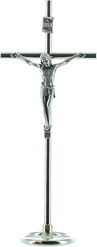 Palais du Rosaire Crucifix en métal sur pied 16 cm - Crucifix métal - Culte Chrétien en Métal Argenté